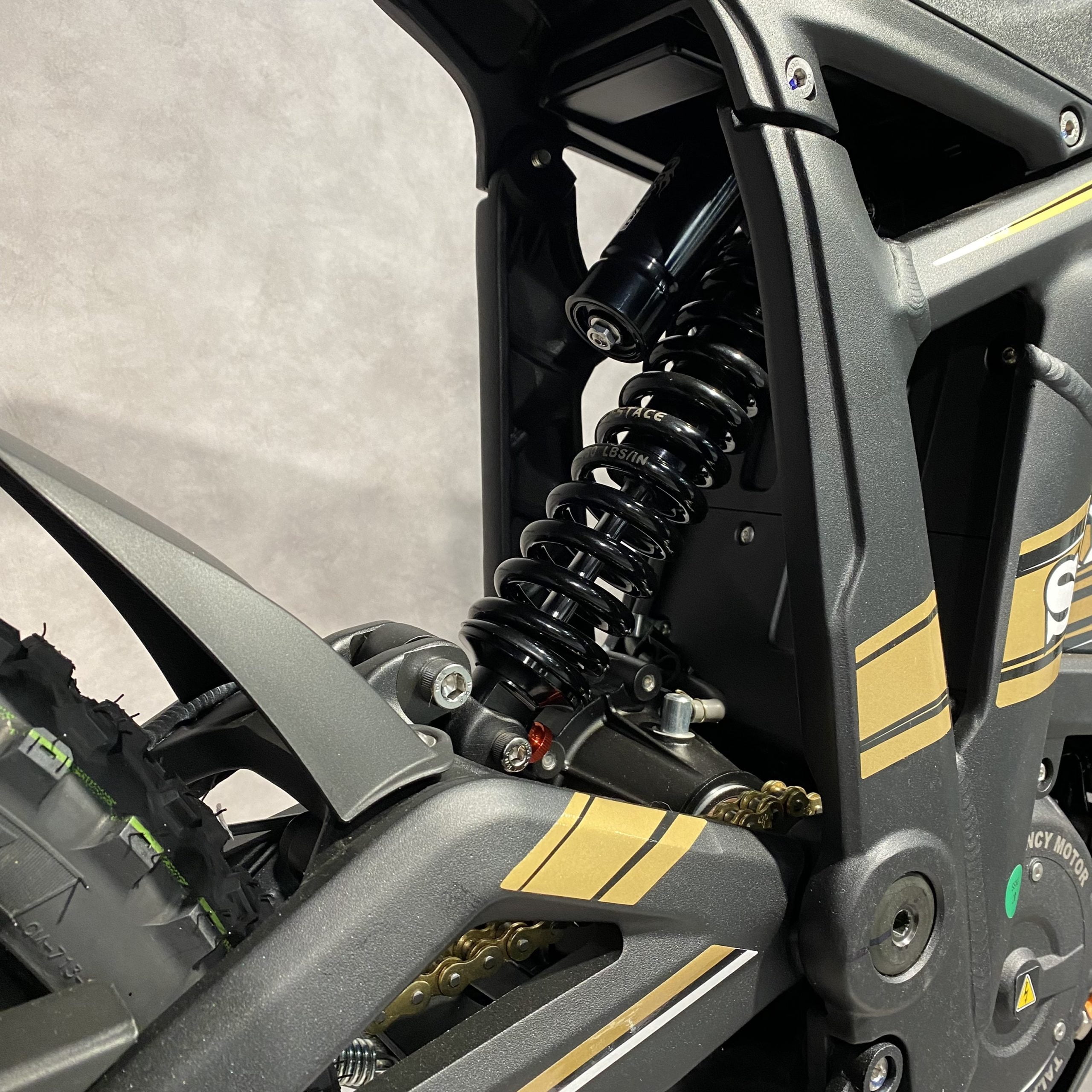 de STING wordt aangedreven door een indrukwekkende 60V 38Ah lithium-ion power pack, die 2280 wattuur is en gemakkelijk kan worden verwisseld. De power packs kunnen binnen enkele seconden worden verwisseld met een ander volledig opgeladen power pack voor een onbeperkt bereik. Met LG 21700 lithium-ionbatterijcellen van elektrische autokwaliteit, ultramodern geprogrammeerd BMS en geoptimaliseerde interne structuur, is dit batterijpakket ingeschakeld om ervoor te zorgen dat de motor u veilig, hoogwaardig overal off-road heen brengt.